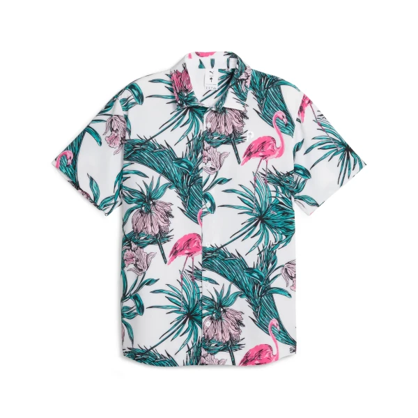 Channel those vacation vibes in this PTC Print Button Down. PUMA X PALM TREE CREW is a collaboration with Rickie Fowler and Kygo.