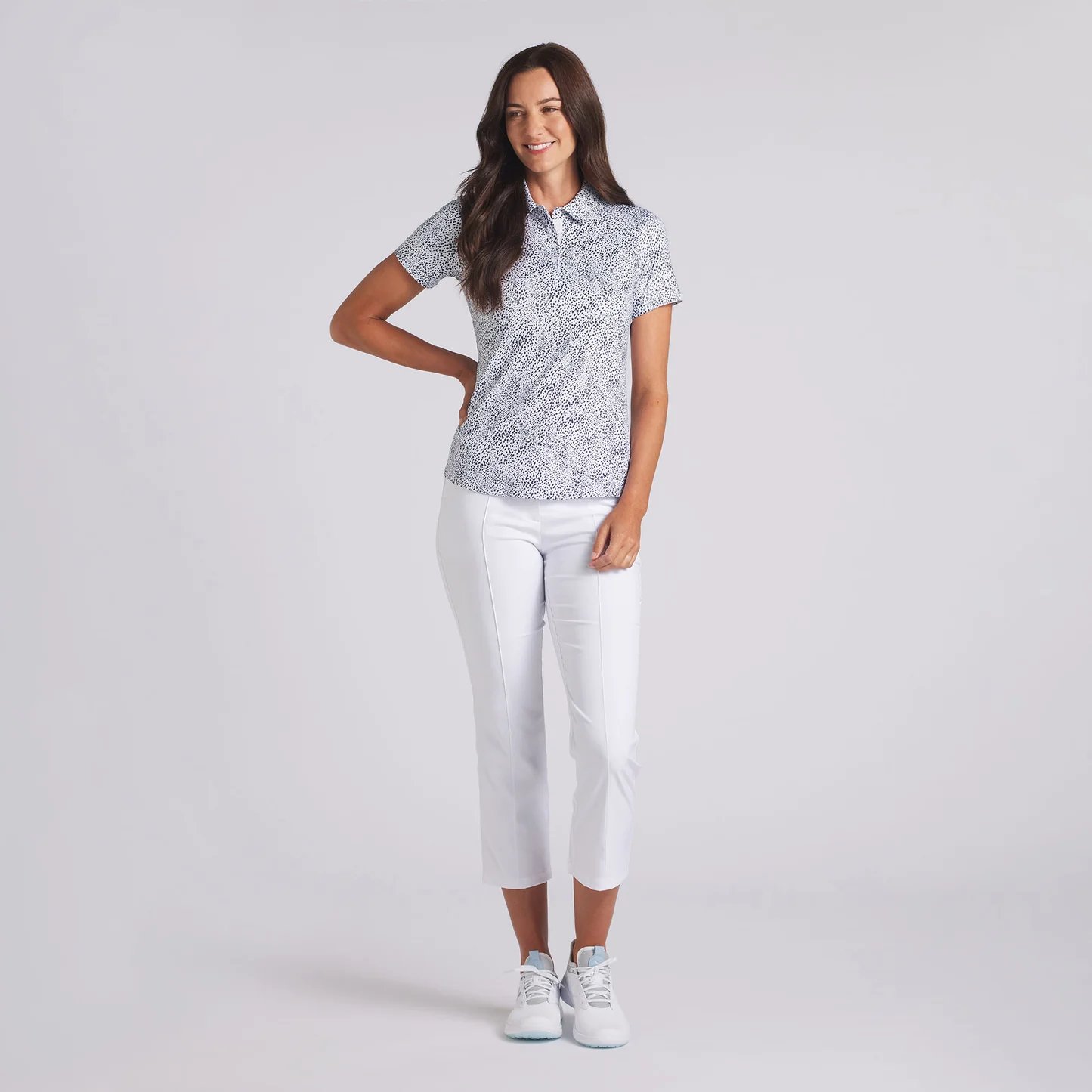 W CLOUDSPUN Microdot SS Polo – White Glow – Deep Navy